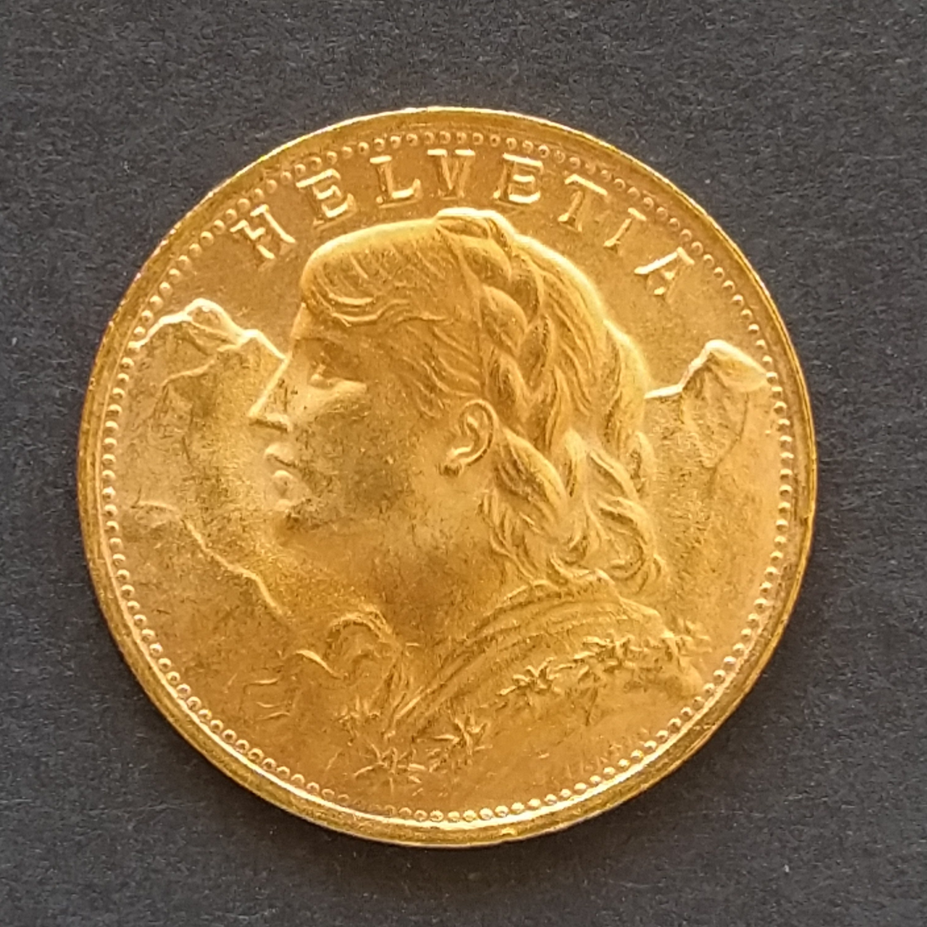 La monetazione d’oro della Svizzera negli anni tra il 1883 ed il 1949, ed in funzione dei criteri adottati dall’Unione Monetaria Latina, comprendeva i “tagli” da 10, 20 e 100 Franchi.