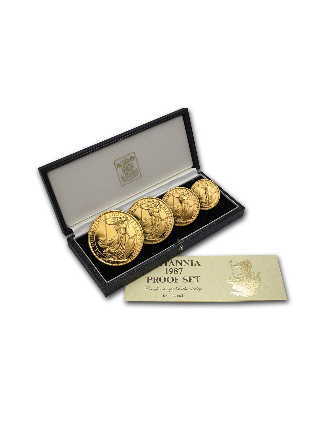 Serie completa proof Britannia in oro da 1, 1/2, 1/4 e 1/10 di oncia.
