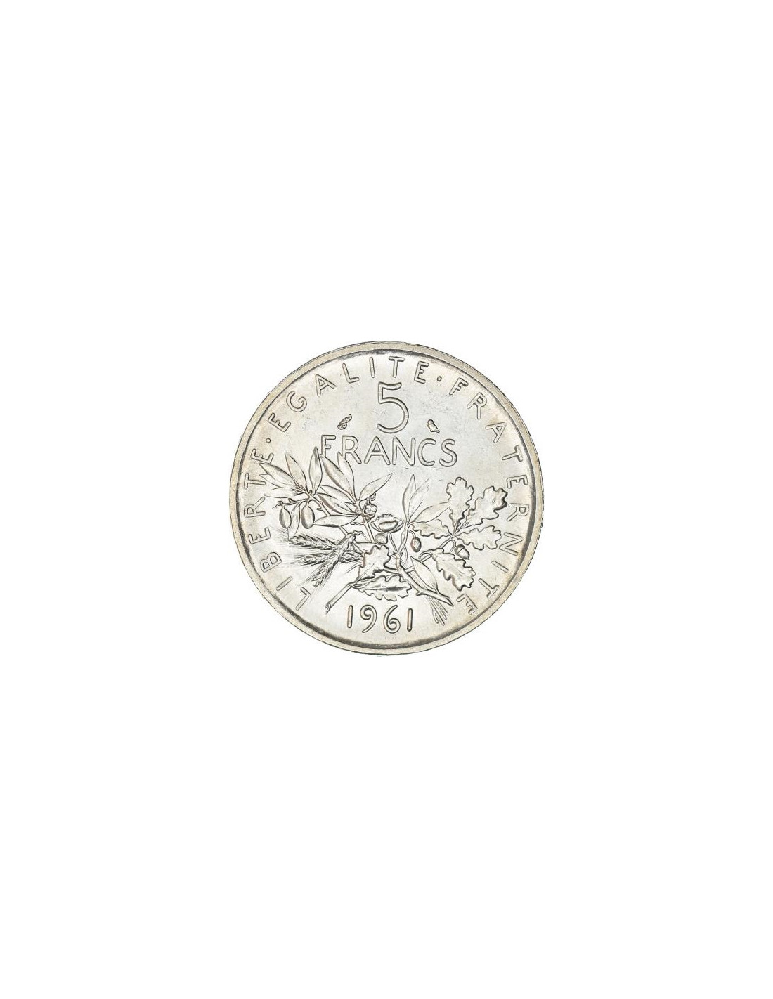 Moneta da 5 Franchi francesi in argento titolo 835/100. Al Dritto, in primo piano, è raffigurata la Seminatrice, mentre sullo sfondo si nota un sole all'orizzonte che irradia il cielo con i suoi raggi. Lungo il contorno si trovano: ai due lati le scritte ad arco "REPUBLIQUE" e "FRANÇAISE" ed in basso la firma dell'incisore "O. Roty". Al Verso, al centro della moneta, è disegnato un bouquet costituito da un ramoscello d'ulivo, uno di quercia, un papavero ed alcune spighe; subito sopra, scritta su due righe, è posta l'indicazione del valore "5 FRANCS". Ai due lati della cifra "5" si trovano il simbolo del direttore della zecca, a sinistra, e quello dell'incisore capo, a destra. Lungo il contorno sono impressi l'iscrizione circolare "LIBERTE • EGALITE • FRATERNITE" ed il millesimo di conio (posizionato in basso).