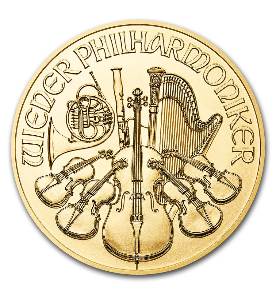 La moneta d’oro austriaca della Filarmonica di Vienna (Wiener Philharmoniker) è in assoluto la più bella moneta d’oro austriaca da investimento. Chi è appassionato di musica classica non può non conoscere una delle orchestre più famose e rinomate al mondo: la Filarmonica di Vienna, che dà il nome a questa moneta d’oro da investimento. Vengono ritratti l'organo a canne nella Sala d'Oro del Musikverein e gli strumenti della Filarmonica di Vienna. Emessa per la prima volta nel 1989. È famosa per la sua bellezza ed è in assoluto una delle monete da investimento più vendute ed apprezzate al mondo. È stata la prima moneta del genere ad essere emessa con valore nominale in euro, mentre fino al 2002 era coniata in scellini. Si tratta di una moneta in oro puro, quindi 999,9/1000 (24 carati) ed ha mantenuto inalterato il suo design dal 1989 ad oggi. Naturalmente, grazie alla sua popolarità, la Vienna Philharmonic si può classificare certamente tre le migliori monete d'oro da investimento. Facilmente liquidabile, sta riscuotendo sempre più successo sui mercati emergenti, primo fra tutti quello cinese. È da sempre tra le più apprezzata in Nord America, Giappone ed Europa. Secondo il World Gold Council, è stata la moneta d'oro più venduta al mondo negli anni 1992, 1995 e 1996. Sul dritto viene raffigurato il famoso organo a canne nella Sala d'Oro del Musikverein di Vienna, molto ben dettagliato. In alto troviamo la scritta che identifica l'emittente (Republik Österreich). Nella parte bassa abbiamo l'indicazione del peso, la purezza dell'oro, l'anno di emissione ed il valore nominale (100 euro per la moneta in oro da 1 oncia). Sul rovescio invece troviamo alcuni strumenti della Filarmonica di Vienna: un corno, un fagotto, quattro violini, un'arpa e un violoncello. Al centro dell'immagine, in alto, c'è il nome della moneta, naturalmente in tedesco: Wiener Philarmoniker.