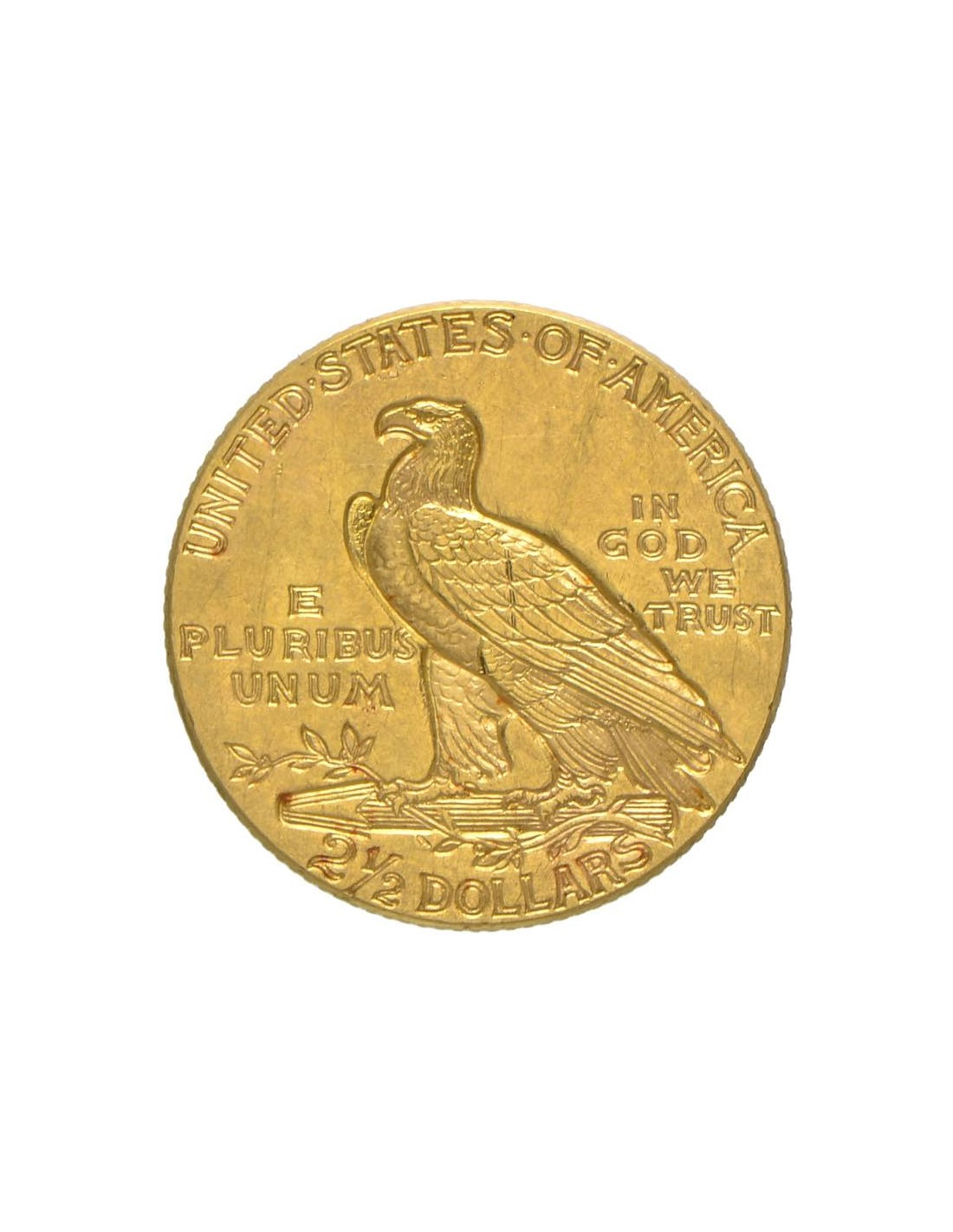 Le moneta d’oro americana da 2,5, 5 e 10 dollari d’oro Testa Indiano sono state coniate dal 1908 al 1916 e dal 1929 dalla United States Mint in varie zecche, le quali hanno apportato il loro marchio sulle monete. Parliamo di Denver (D), New Orleans (O), San Francisco (S) e Philadelphia (senza marchio). A disegnare i 2,5, 5 e 10 dollari d’oro con la testa indiano (denominazione ufficiale “Indian Head”) fu lo scultore di Boston Bela Lyon Pratt, che fu allievo di Augustus St. Gaudens, il quale fu l’autore di un altro design dei 5, 10 e 20 dollari d’oro americani. Questo esemplare è molto particolare perché i disegni non sono incisi in rilievo, ma in incuso, ovvero sono incavati rispetto al piano della moneta, oppure tendenzialmente sullo stesso piano della moneta. Nella storia numismatica americana questa fu la prima volta che venne incisa una moneta in questa maniera e l’autore ricevette molte critiche in proposito, soprattutto per una questione igienica. Le critiche sparirono pian piano e oggi questi esemplari sono molto ricercati perché rappresentano una parte importante della storia della monetazione statunitense. Sul dritto troviamo il profilo di un capo indiano, che per alcuni studiosi si tratta del capo Hollow Horn Bear dei Lakota Brulé. In alto troviamo la scritta “LIBERTY”, mentre in basso la data di coniazione, sopra quest’ultima ci sono le iniziali dell’autore del disegno. In circolo vicino ai bordi sono state disegnate 13 stelle, che rappresentano le 13 colonie britanniche che si ribellarono alla madrepatria. Sul rovescio è presente un’aquila ad ali chiuse che guarda a sinistra, la quale si trova sopra un fascio di frecce, su cui è intrecciato un ramoscello d’ulivo. Nella parte superiore in circolo troviamo il nome della nazione “UNITED STATES OF AMERICA”, mentre nella parte bassa il valore nominale dei dollari d’oro Testa Indiano. A sinistra dell’aquila è presente uno dei motti degli USA “E PLURIBUS UNUM”, mentre a destra troviamo l’altro famoso motto “IN GOD WE TRUST”.