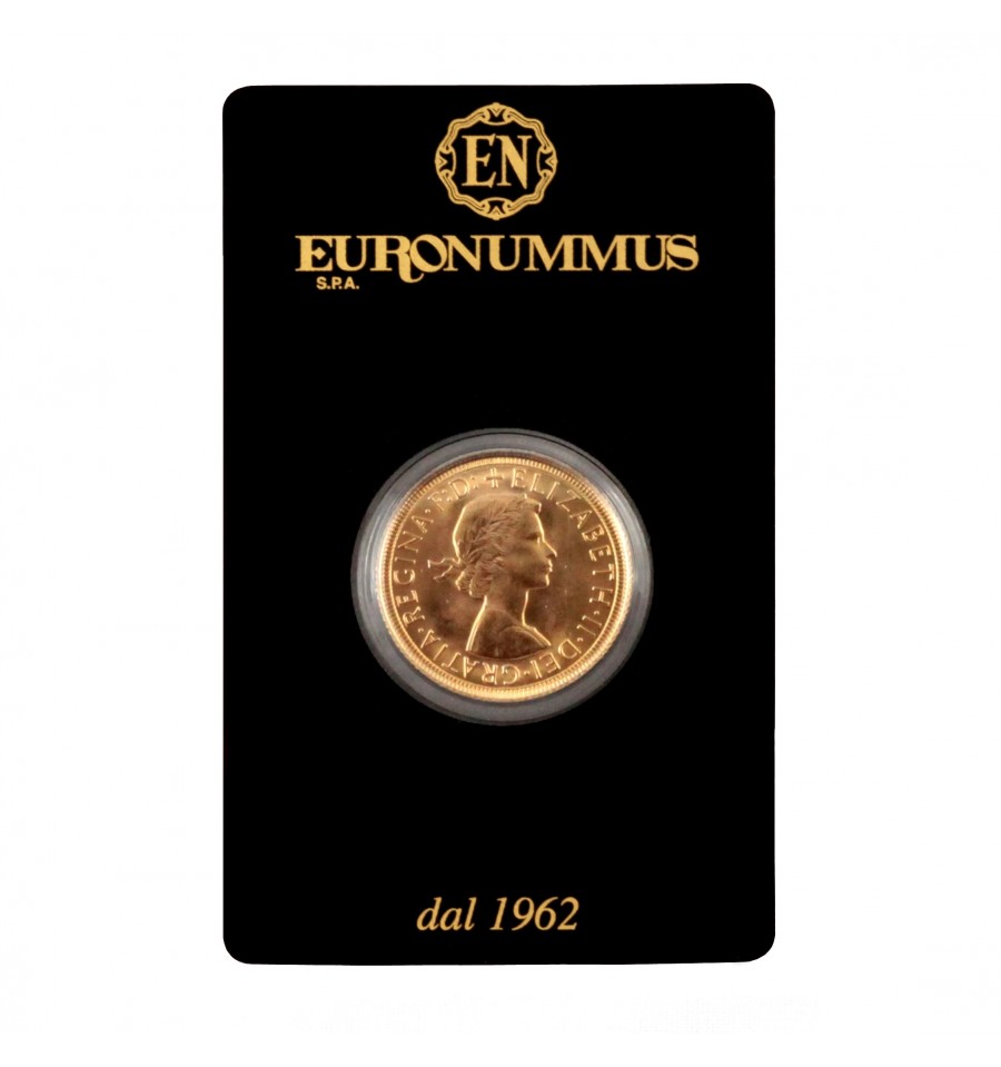 La Sterlina oro Elisabetta II, come da tradizione, riporta sul dritto il ritratto di Sua Maestà la Regina d’Inghilterra. Elisabetta II salì al trono a soli 26 anni nel 1952 quando morì suo padre re Giorgio VI. L’attuale sovrana del Regno Unito, è al momento la più longeva della storia inglese. Nel 2016 ha festeggiato il suo 90° compleanno. Ad oggi il suo ritratto riportato sulle sterline d’oro è stato aggiornato ben 4 volte dalla prima edizione coniata nel 1957, quindi ne esistono 5 versioni. Precedentemente la regina più longeva fu Vittoria del Regno Unito, che fu ritratta in 3 versioni differenti sulle sterline d’oro. La sterlina raffigurante la Regina Elisabetta II (Queen Elizabeth II) viene coniata dal 1957. Generalmente è questa la sterlina definita di "Nuovo Conio", anche se esistono diverse interpretazioni su cosa sia vecchio e nuovo conio, in riferimento alla moneta in questione. Nel 1957 la sterlina d’oro tornò in circolazione e fra le sterline d’oro Elisabetta II quella definita “Sterlina d’oro Fiocco” è la prima edizione in versione bullion. La Royal Mint la produsse dal 1957 al 1968. Sul fronte della sovrana troviamo il primo ritratto di Elisabetta II, opera della scultrice Mary Gillick. La giovane Regina è rappresentata in un’aura classicheggiante. Linee morbide e forme proporzionate restituiscono una composizione equilibrata e armoniosa. A rifinire il tutto la corona d’alloro ed il delizioso fiocchetto alla base dell’acconciatura da cui la serie ha preso il nome. Sul rovescio è disegnato lo storico disegno dell’italiano Benedetto Pistrucci, che raffigura San Giorgio che combatte a cavallo contro il drago.
