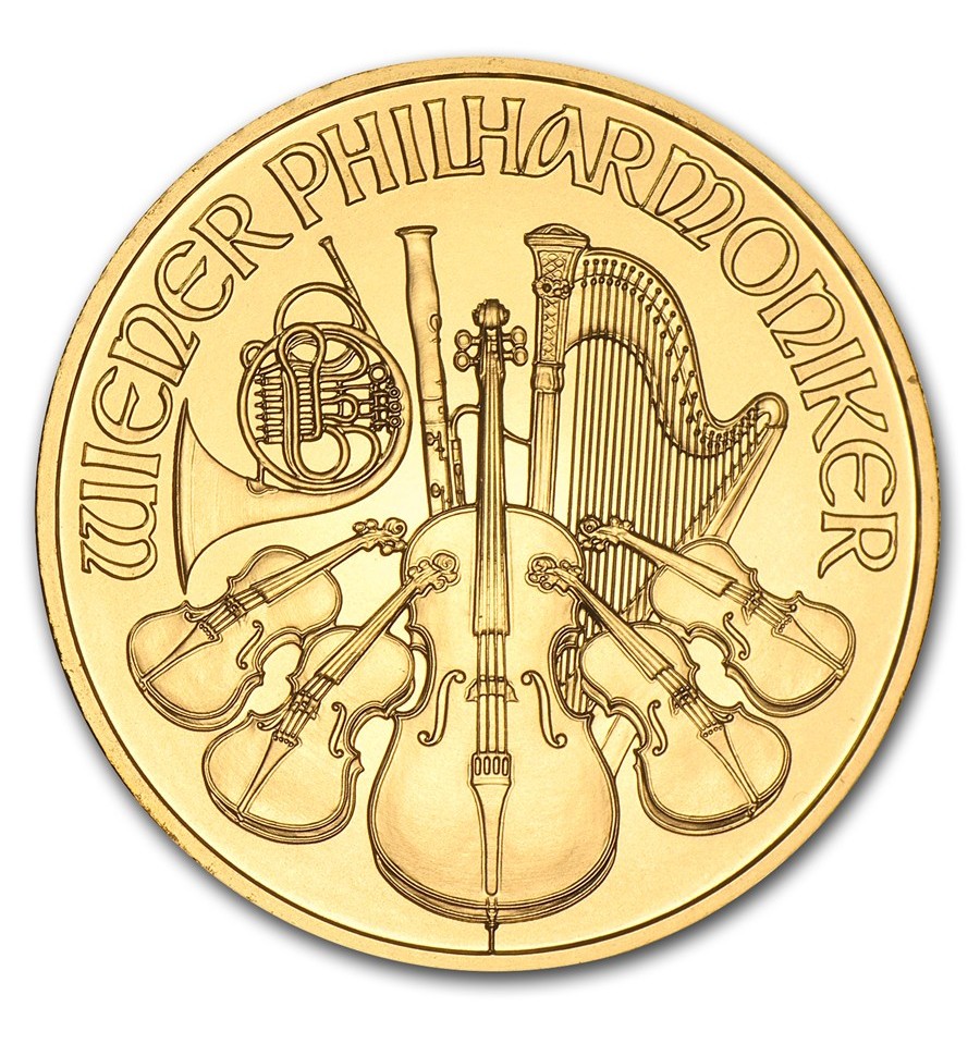 La moneta d’oro austriaca della Filarmonica di Vienna (Wiener Philharmoniker) è in assoluto la più bella moneta d’oro austriaca da investimento. Chi è appassionato di musica classica non può non conoscere una delle orchestre più famose e rinomate al mondo: la Filarmonica di Vienna, che dà il nome a questa moneta d’oro da investimento. Vengono ritratti l'organo a canne nella Sala d'Oro del Musikverein e gli strumenti della Filarmonica di Vienna. Emessa per la prima volta nel 1989. È famosa per la sua bellezza ed è in assoluto una delle monete da investimento più vendute ed apprezzate al mondo. È stata la prima moneta del genere ad essere emessa con valore nominale in euro, mentre fino al 2002 era coniata in scellini. Si tratta di una moneta in oro puro, quindi 999,9/1000 (24 carati) ed ha mantenuto inalterato il suo design dal 1989 ad oggi. Naturalmente, grazie alla sua popolarità, la Vienna Philharmonic si può classificare certamente tre le migliori monete d'oro da investimento. Facilmente liquidabile, sta riscuotendo sempre più successo sui mercati emergenti, primo fra tutti quello cinese. È da sempre tra le più apprezzata in Nord America, Giappone ed Europa. Secondo il World Gold Council, è stata la moneta d'oro più venduta al mondo negli anni 1992, 1995 e 1996. Sul dritto viene raffigurato il famoso organo a canne nella Sala d'Oro del Musikverein di Vienna, molto ben dettagliato. In alto troviamo la scritta che identifica l'emittente (Republik Österreich). Nella parte bassa abbiamo l'indicazione del peso, la purezza dell'oro, l'anno di emissione ed il valore nominale (100 euro per la moneta in oro da 1 oncia). Sul rovescio invece troviamo alcuni strumenti della Filarmonica di Vienna: un corno, un fagotto, quattro violini, un'arpa e un violoncello. Al centro dell'immagine, in alto, c'è il nome della moneta, naturalmente in tedesco: Wiener Philarmoniker.