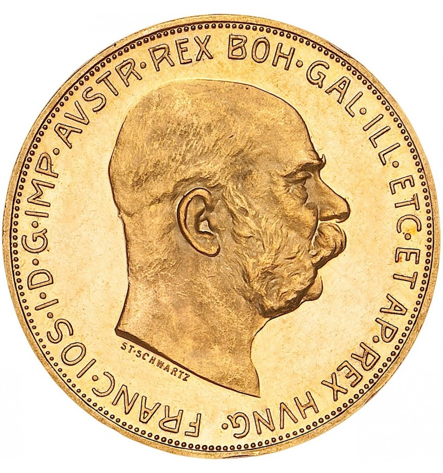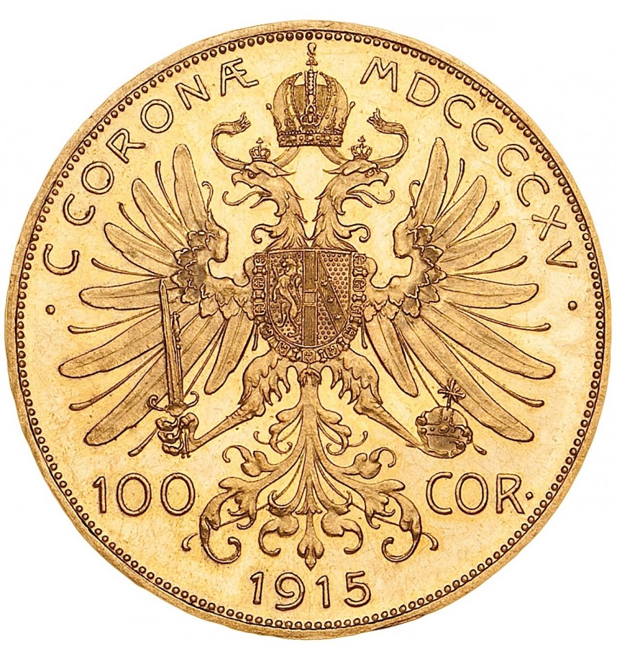 La moneta d'oro da 100 Corone austriaca è una moneta dal conio molto elegante. Considerata al pari del 4 Ducati una moneta da investimento, il suo diametro di 37,00 mm e il peso complessivo di 33,875 gr, dei quali 30,488 di oro puro, la rendono un ottimo investimento e un prezioso oggetto da collezione. Sul dritto della moneta è raffigurato l'Imperatore Francesco Giuseppe I, mentre il rovescio mostra lo stemma imperiale con l'aquila a due teste. Sebbene le 100 Corone d'oro riportino la data 1915, quasi tutti gli esemplari in circolazione non sono stati prodotti in quell'anno: le 100 Corone d'oro 1915 sono riconi e vengono tuttora prodotti dalla zecca austriaca e datati 1915.