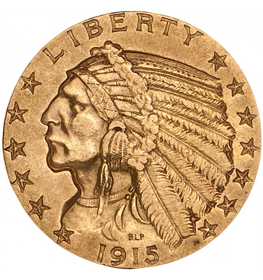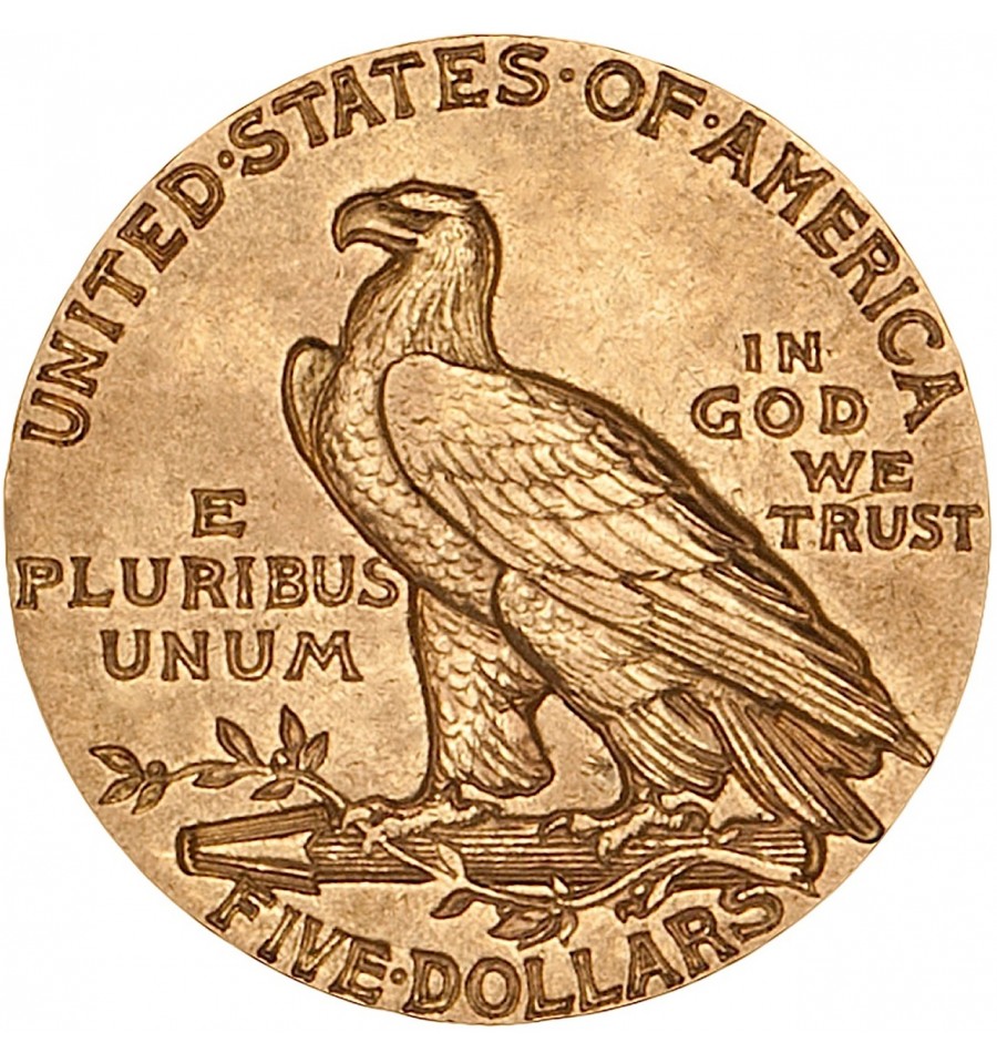 Le moneta d’oro americana da 2,5, 5 e 10 dollari d’oro Testa Indiano sono state coniate dal 1908 al 1916 e dal 1929 dalla United States Mint in varie zecche, le quali hanno apportato il loro marchio sulle monete. Parliamo di Denver (D), New Orleans (O), San Francisco (S) e Philadelphia (senza marchio). A disegnare i 2,5, 5 e 10 dollari d’oro con la testa indiano (denominazione ufficiale “Indian Head”) fu lo scultore di Boston Bela Lyon Pratt, che fu allievo di Augustus St. Gaudens, il quale fu l’autore di un altro design dei 5, 10 e 20 dollari d’oro americani. Questo esemplare è molto particolare perché i disegni non sono incisi in rilievo, ma in incuso, ovvero sono incavati rispetto al piano della moneta, oppure tendenzialmente sullo stesso piano della moneta. Nella storia numismatica americana questa fu la prima volta che venne incisa una moneta in questa maniera e l’autore ricevette molte critiche in proposito, soprattutto per una questione igienica. Le critiche sparirono pian piano e oggi questi esemplari sono molto ricercati perché rappresentano una parte importante della storia della monetazione statunitense. Sul dritto troviamo il profilo di un capo indiano, che per alcuni studiosi si tratta del capo Hollow Horn Bear dei Lakota Brulé. In alto troviamo la scritta “LIBERTY”, mentre in basso la data di coniazione, sopra quest’ultima ci sono le iniziali dell’autore del disegno. In circolo vicino ai bordi sono state disegnate 13 stelle, che rappresentano le 13 colonie britanniche che si ribellarono alla madrepatria. Sul rovescio è presente un’aquila ad ali chiuse che guarda a sinistra, la quale si trova sopra un fascio di frecce, su cui è intrecciato un ramoscello d’ulivo. Nella parte superiore in circolo troviamo il nome della nazione “UNITED STATES OF AMERICA”, mentre nella parte bassa il valore nominale dei dollari d’oro Testa Indiano. A sinistra dell’aquila è presente uno dei motti degli USA “E PLURIBUS UNUM”, mentre a destra troviamo l’altro famoso motto “IN GOD WE TRUST”.